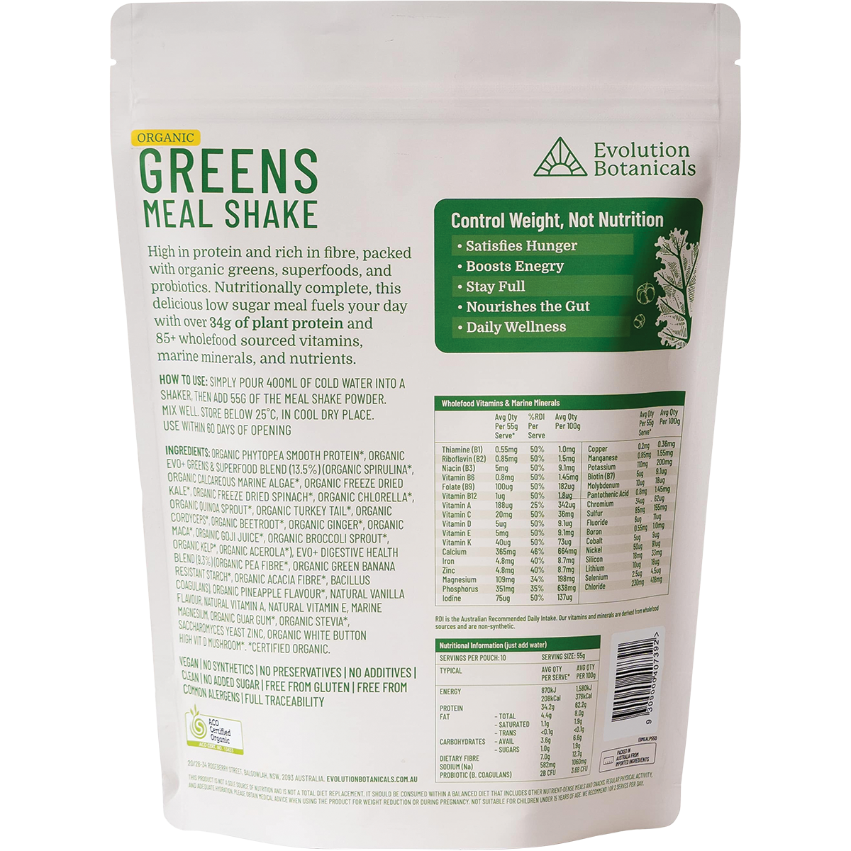 Evolution Botanicals Organic Greens Meal Shake Smooth Pineapple 550g