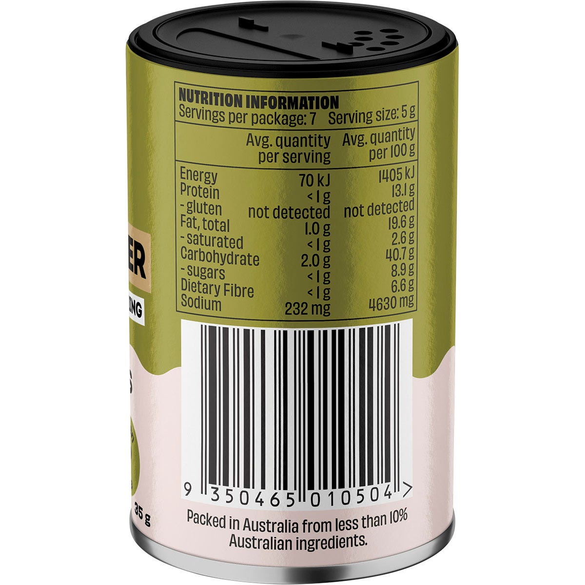 Sesame Seeds, Dried Seaweed, Garlic, Onion, Australian Sea Salt, Coconut Sugar, Soy Sauce Powder, Chilli. Contains: Sesame, Soy.Product Specifications