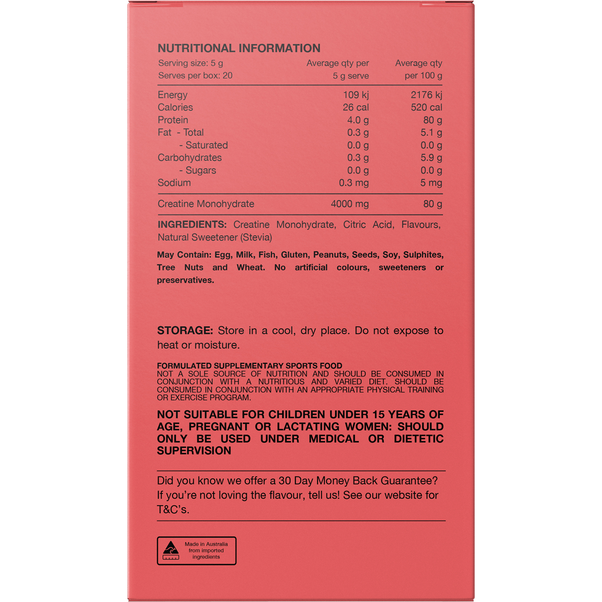 Creatine Monohydrate, Citric Acid, Flavours, Stevia